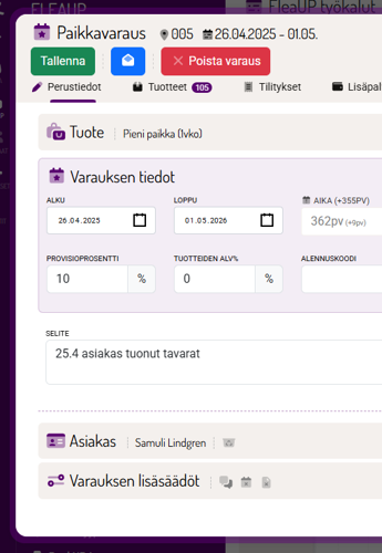 FleaUP-paikkavarausten lisäasetuksia ja hienosäätöä